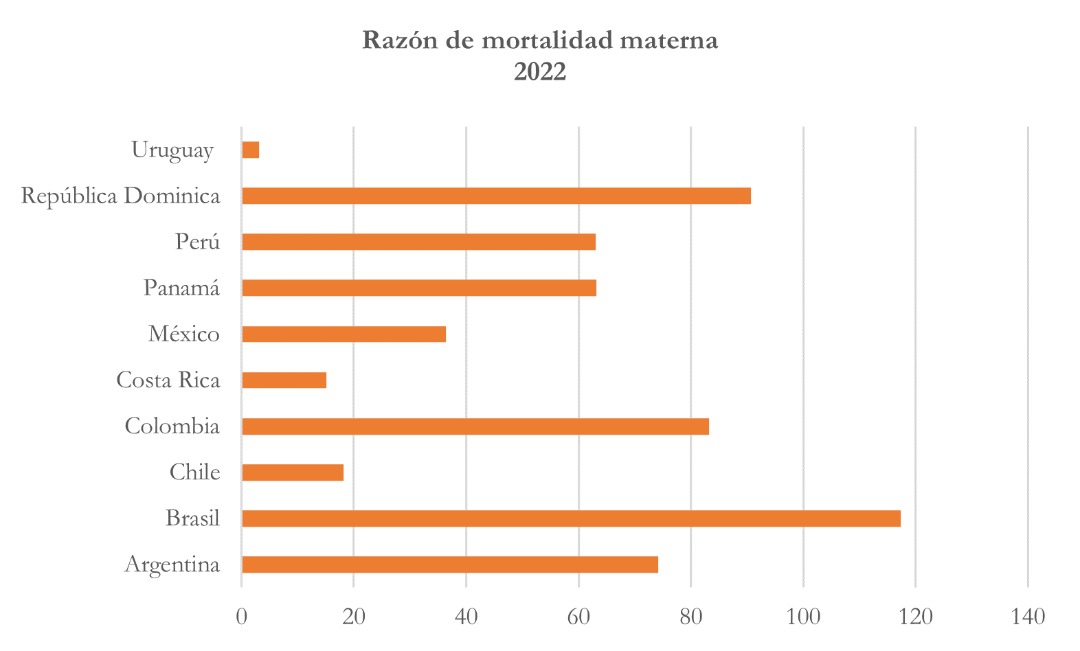 De esta manera, Uruguay tiene la tasa de mortalidad materna más baja de los diez países, sólo se presentaron 3,1 muertes por cada 100 mil habitantes. Por el contrario, Brasil es el país con la tasa de mortalidad materna más alta, en un año se presentaron 117, le siguen República Dominicana (90) y Colombia (83). Las tasas anteriores pueden reflejar las diferencias en cuanto a la calidad de la atención médica materna, el acceso a servicios de salud reproductiva, y otros factores socioeconómicos y de salud que pueden presentar cada uno de los países analizados, así el mayor número de muertes se puede deber a: 1) un acceso limitado en los servicios de salud, en especial, en zonas rurales o dispersas. 2) La falta de educación sobre prácticas saludables durante el embarazo, el parto y el cuidado del recién nacido. 3) La falta de acceso a agua potable segura y condiciones de saneamiento inadecuadas.