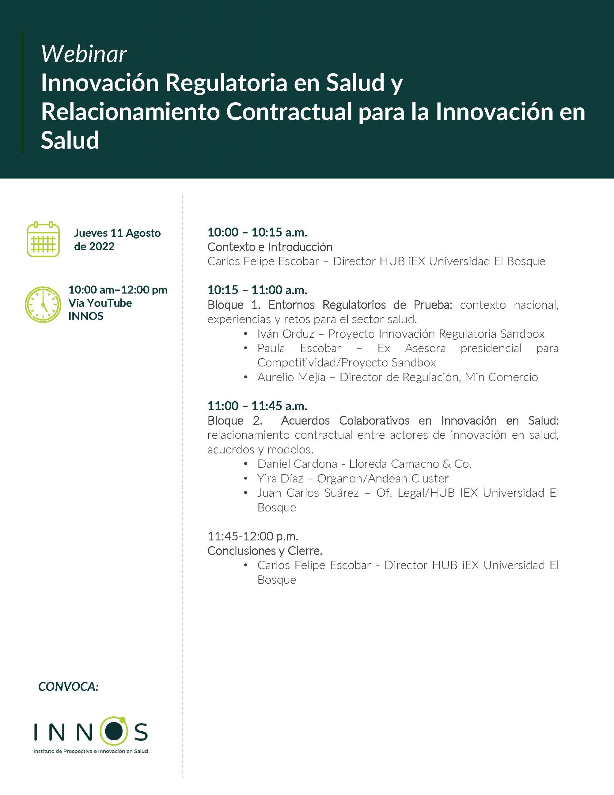 El Webinar ‘Innovación Regulatoria en Salud y Relacionamiento Contractual para la Innovación en Salud’, contará con la participación de Min Comercio, Organon/Andean Cluster, proyecto Sandbox, la Universidad El Bosque y Lloreda Camacho & Co.