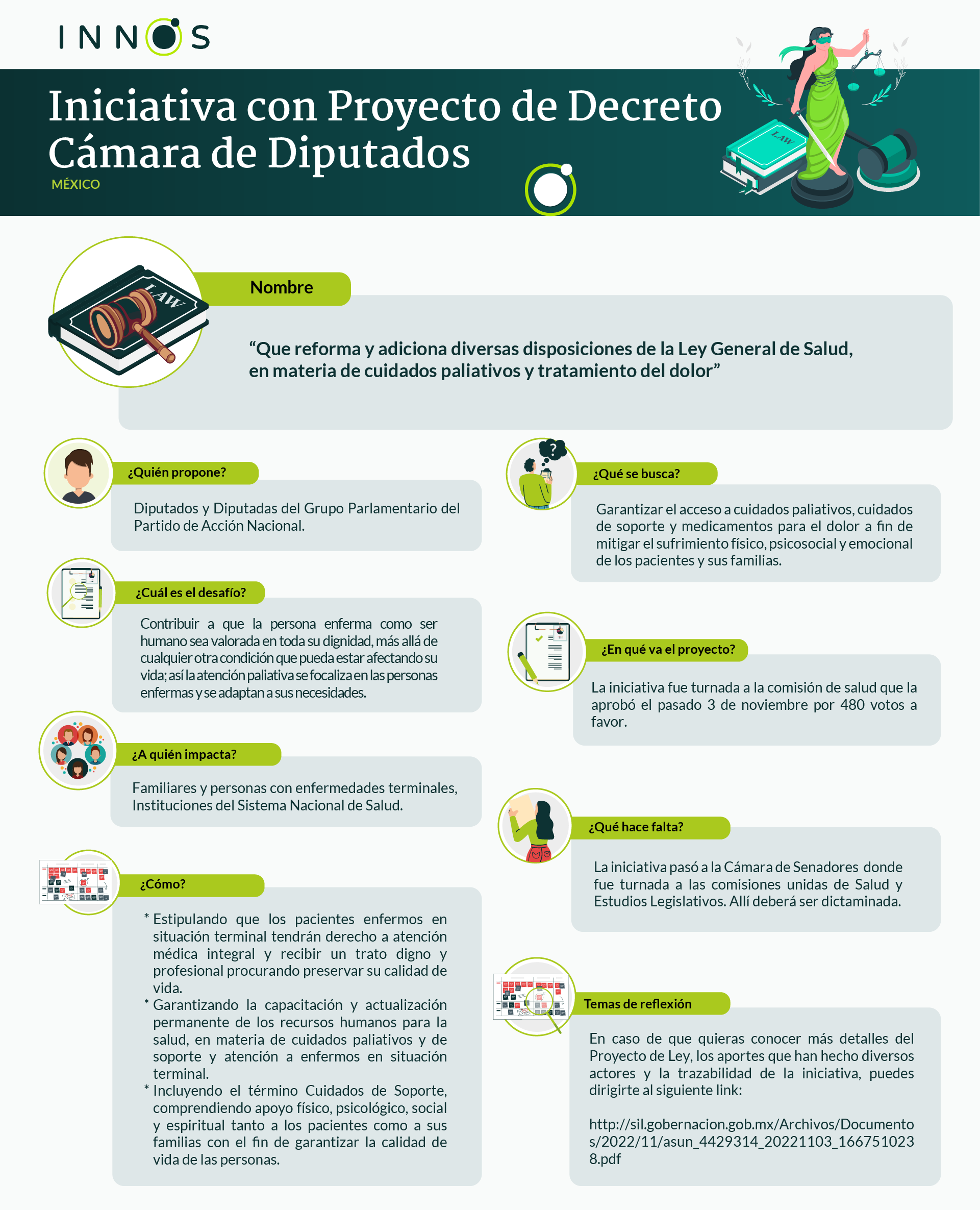 PL “Que reforma y adiciona diversas disposiciones de la Ley General de Salud, en materia de cuidados paliativos y tratamiento del dolor” por INNOS | Dic 5, 2022