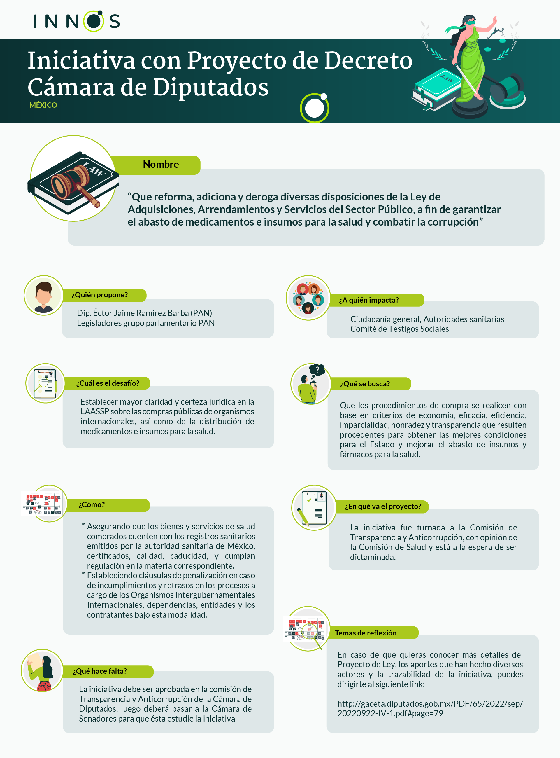 PL “Que reforma, adiciona y deroga diversas disposiciones de la Ley de Adquisiciones, Arrendamientos y Servicios del Sector Público, a fin de garantizar el abasto de medicamentos e insumos para la salud y combatir la corrupción” por INNOS | Dic 5, 2022