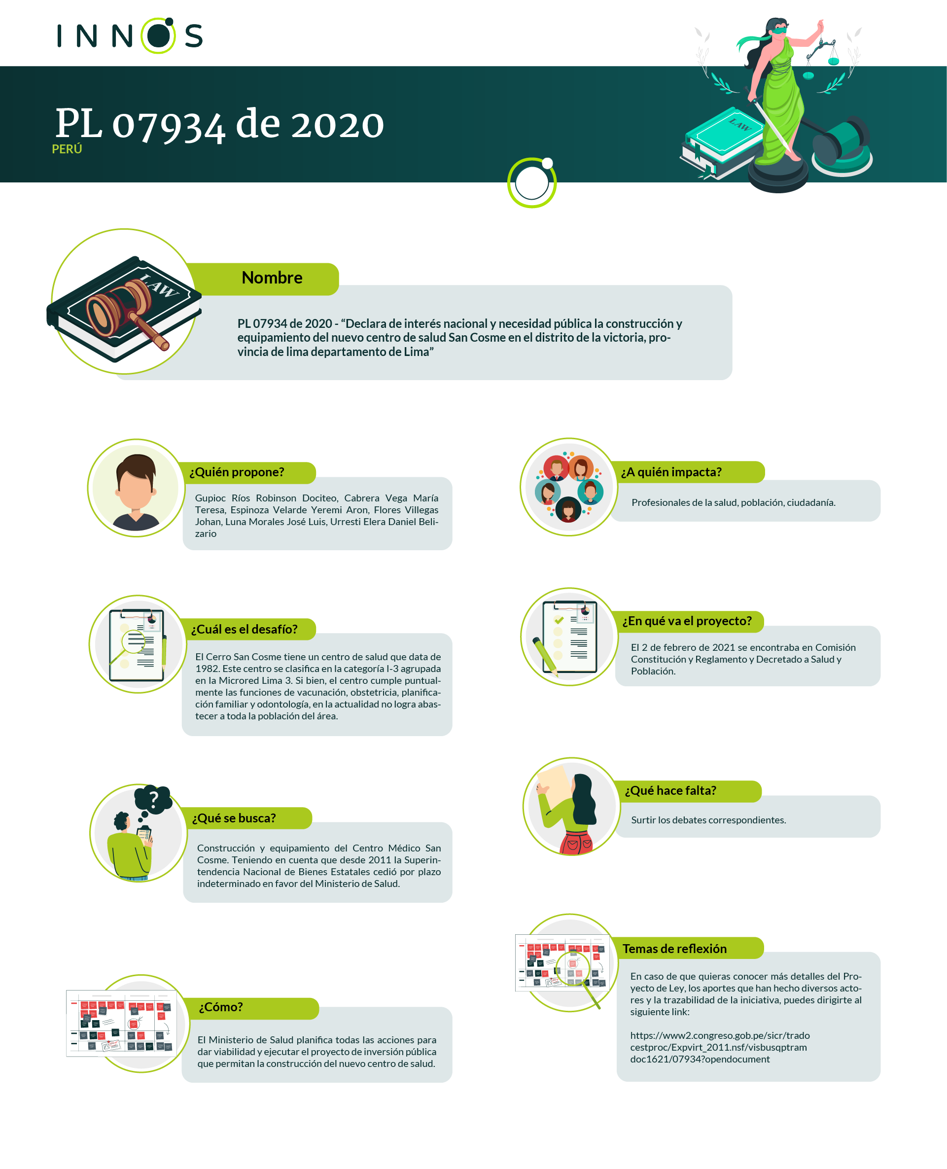 PL 07934 de 2020 – “Declara de interés nacional y necesidad pública la construcción y equipamiento del nuevo centro de salud San Cosme en el distrito de la victoria, provincia de lima departamento de Lima”