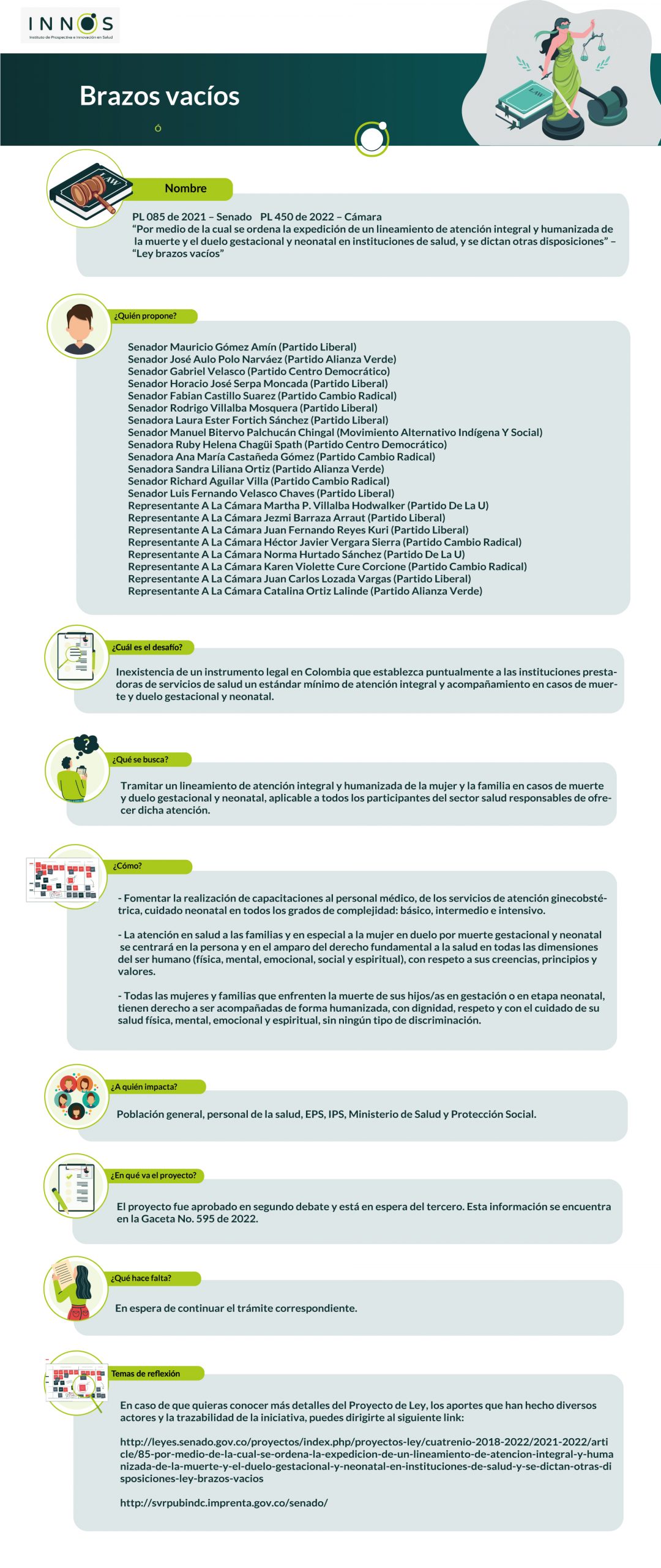 PL 085 de 2021 – Senado PL 450 de 2022 – Cámara “Por medio de la cual se ordena la expedición de un lineamiento de atención integral y humanizada de la muerte y el duelo gestacional y neonatal en instituciones de salud, y se dictan otras disposiciones” – “Ley brazos vacíos”