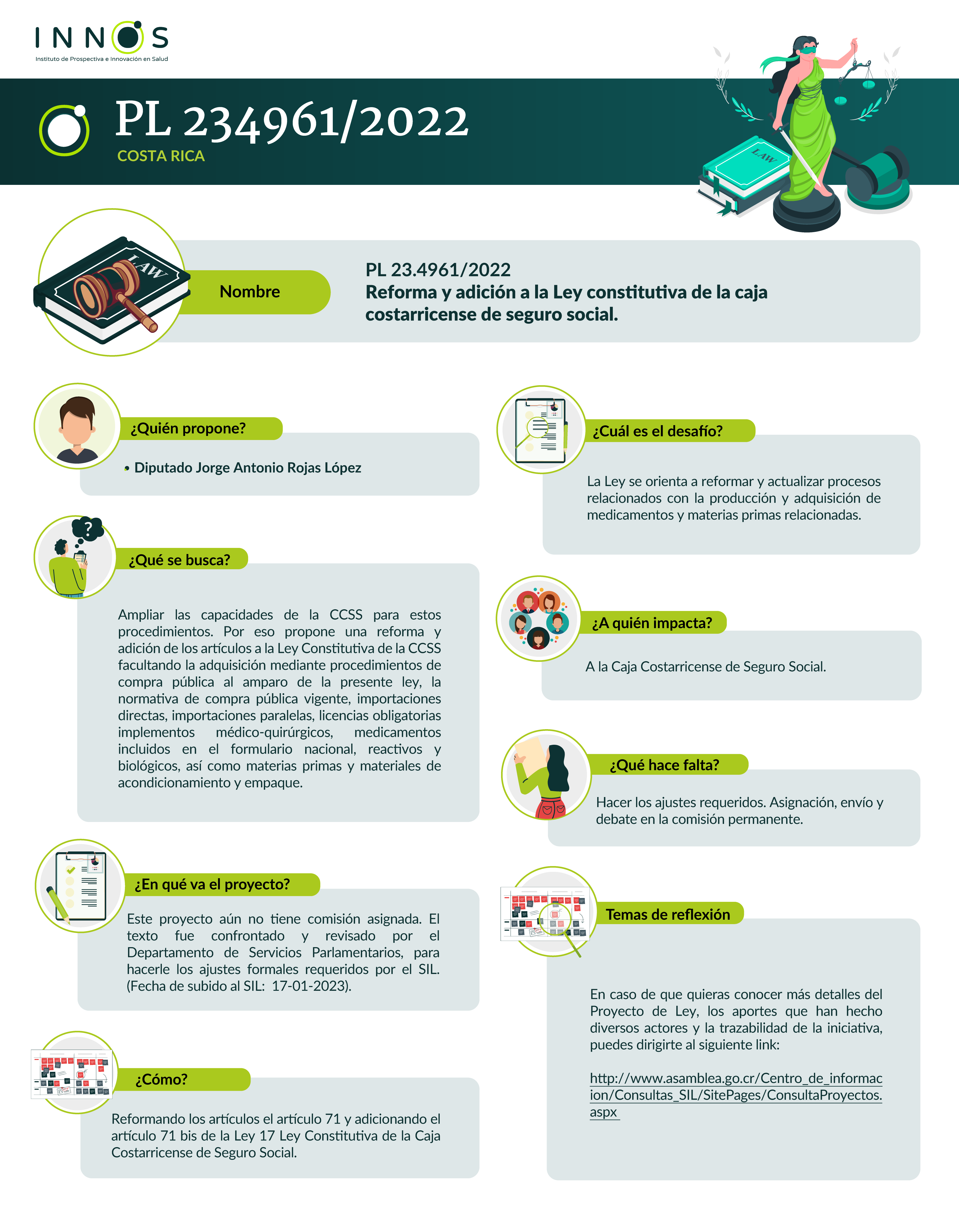 PL 23.4961/2022 Reforma y adición a la Ley constitutiva de la caja costarricense de seguro social.