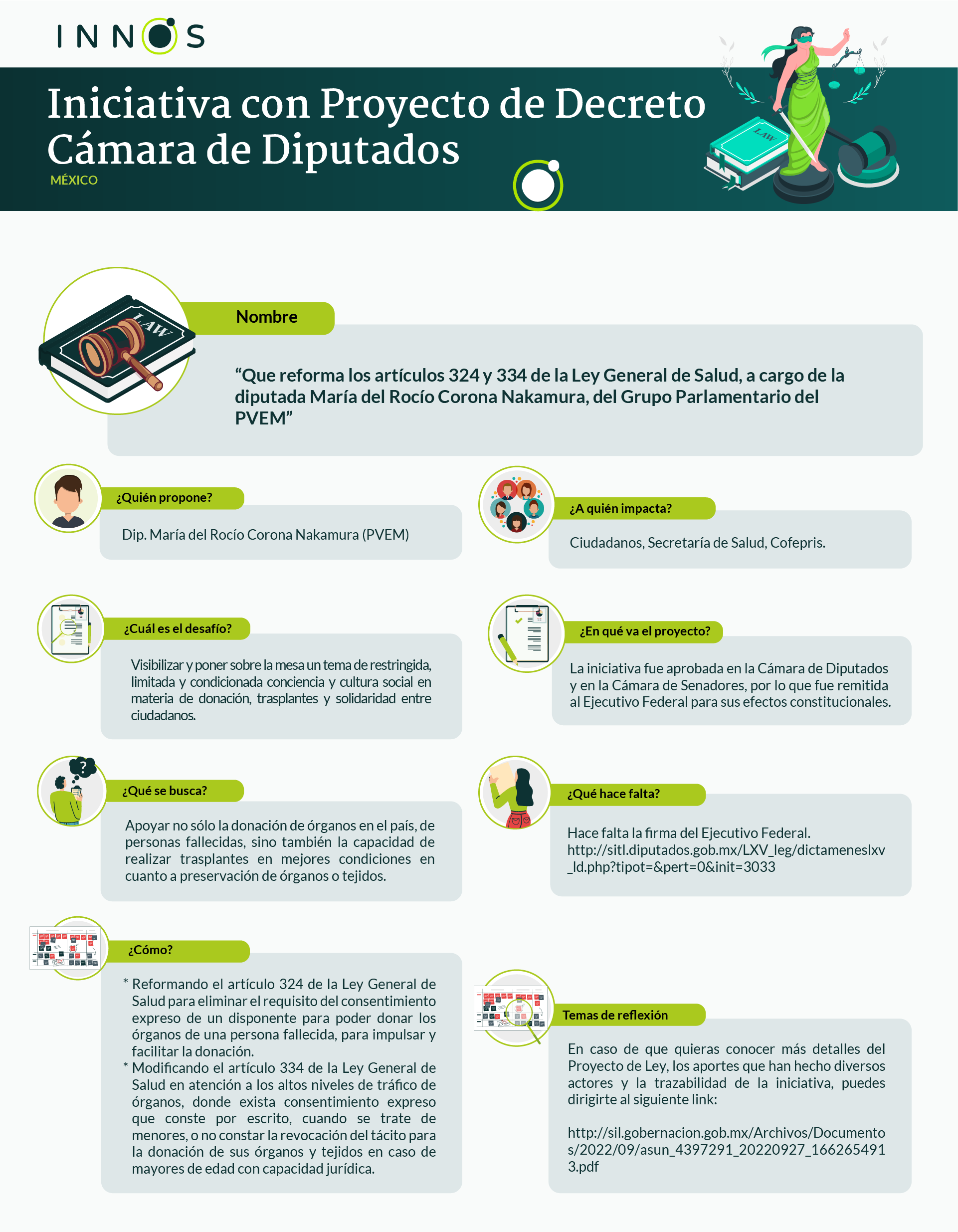 PL “Que reforma los artículos 324 y 334 de la Ley General de Salud, a cargo de la diputada María del Rocío Corona Nakamura, del Grupo Parlamentario del PVEM”