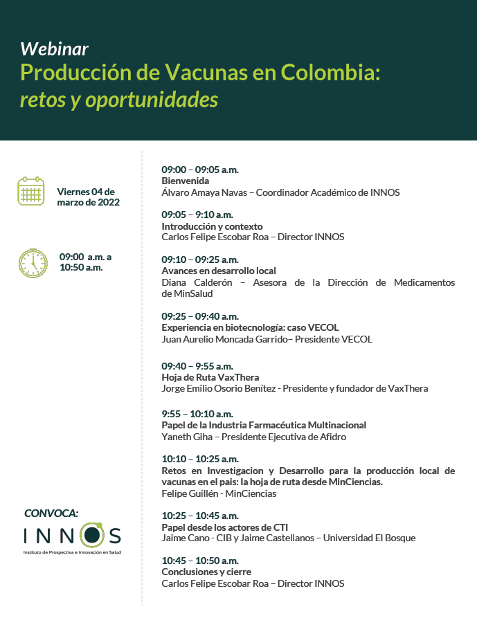 Webinar ‘Producción de vacunas en Colombia: retos y oportunidades’,